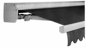 For extended storage periods, make sure your awning is dry and free of debris before retracting to prevent possible mildew. The valance can be removed and stored separately. Unscrew one front bar end cap, loosen fabric locks on both ends and slide valance out.